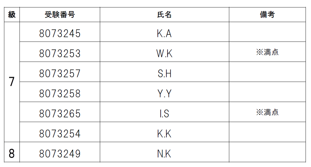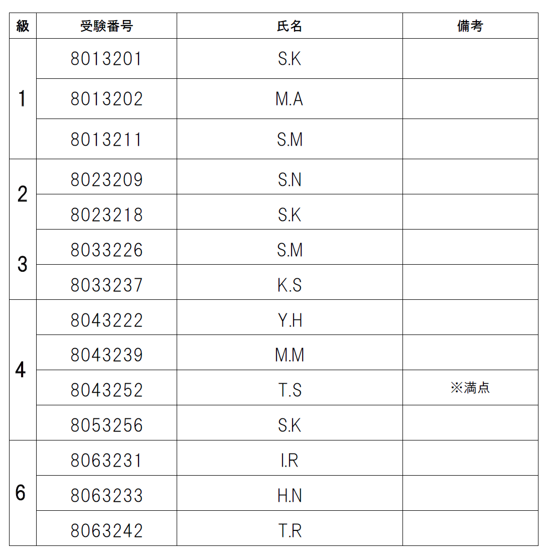 【暗算検定試験合格者 12月】 (12月6日実施:その他調整日あり)
