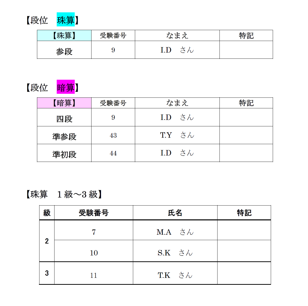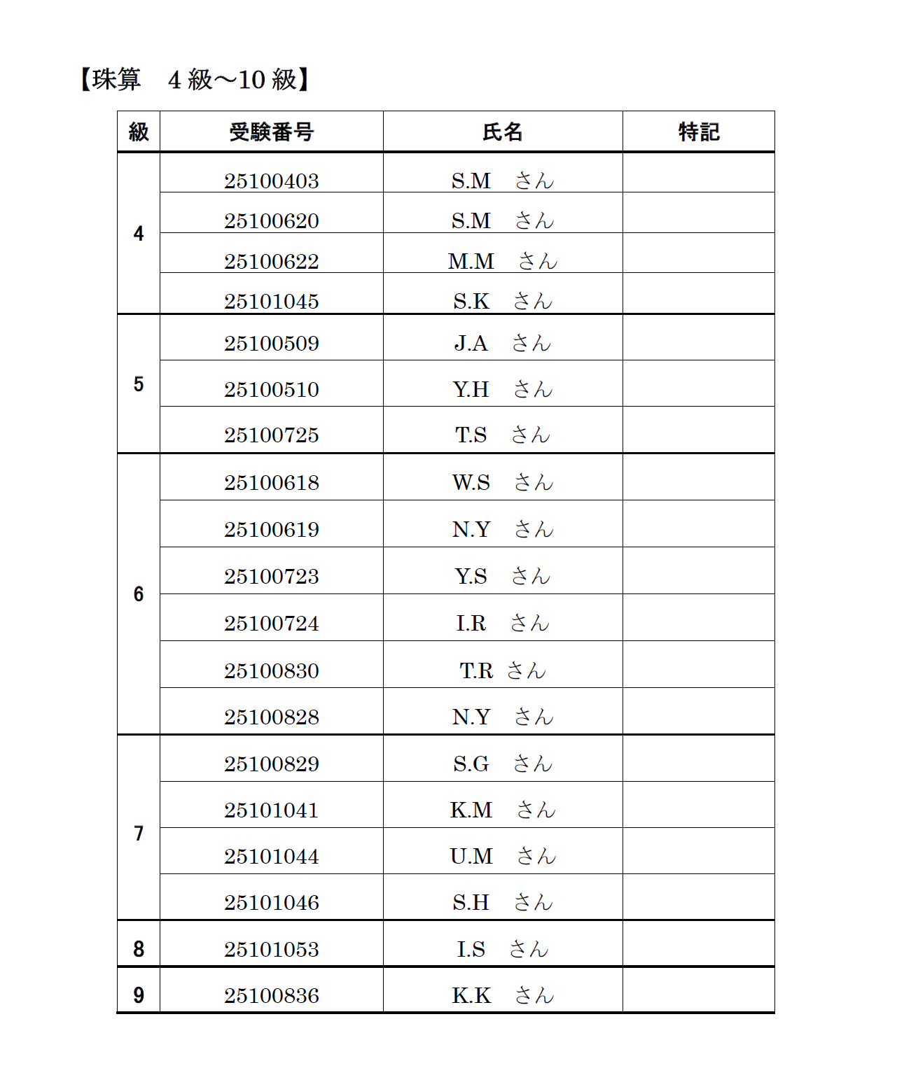珠算・暗算段位 認定試験 合格者 2026年2月